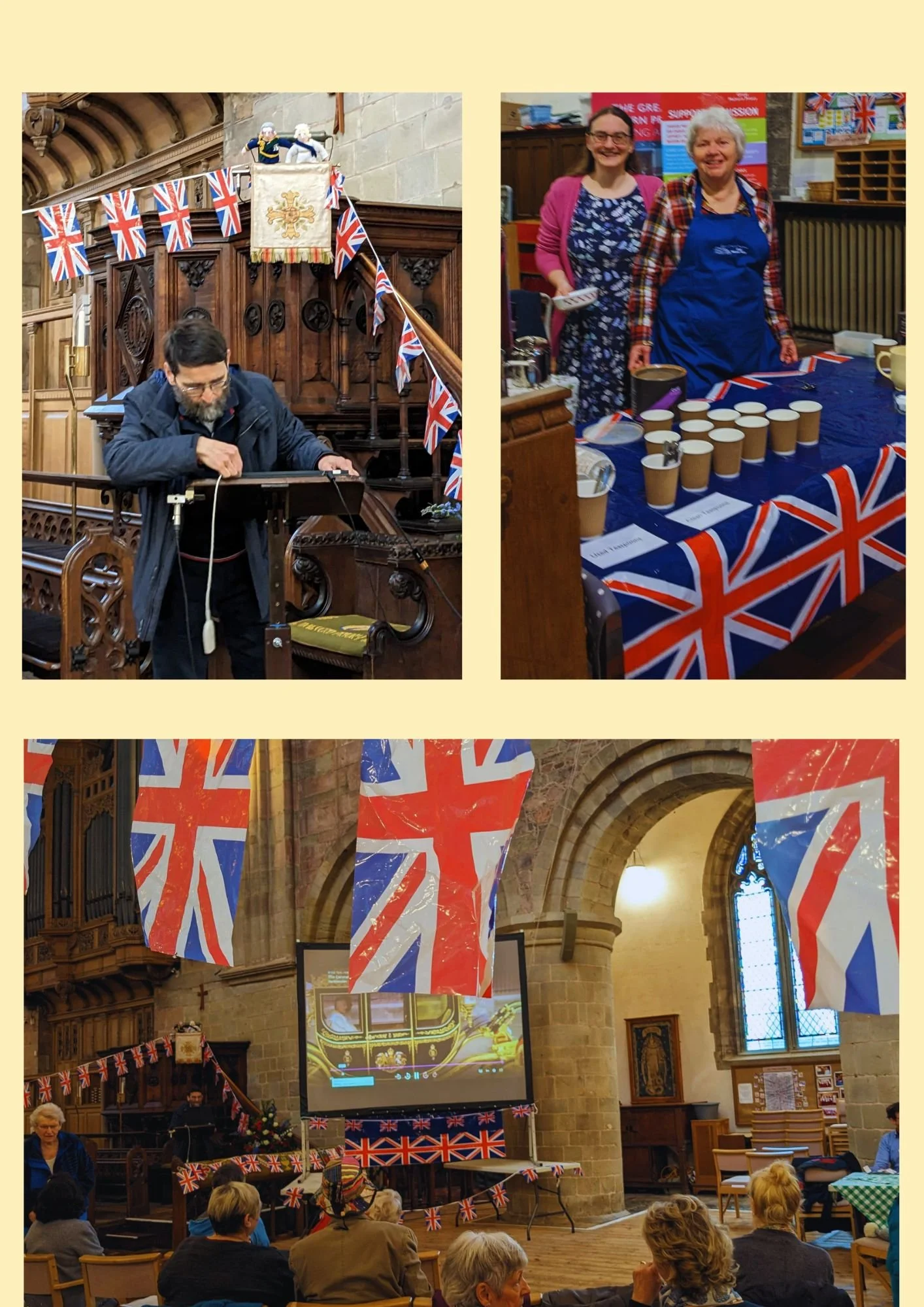 Sustained by hot drinks, cake and savoury goodies, the audience of all ages joined in the hymns and prayers, standing for the National Anthem and giving thanks for the life of service of our new King, reflecting that of Jesus.