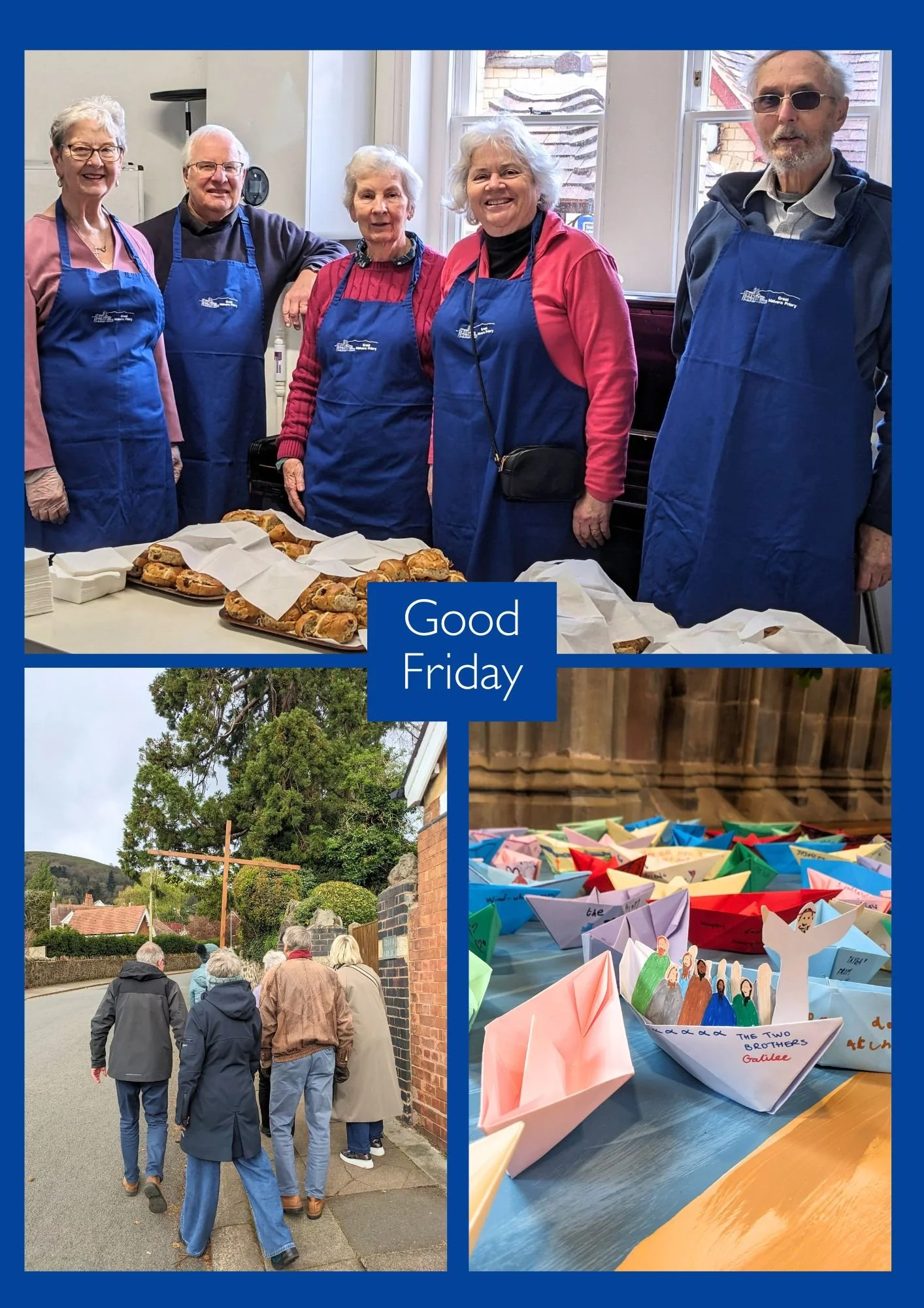 The Priory Hot Cross Bun Team laid on the annual spread, with tea and coffee for all in the Lyttelton Rooms after the service. ‘Go in through the left door and out by the right’ the Vicar instructed before giving the final blessing, waving his arms enthusiastically.